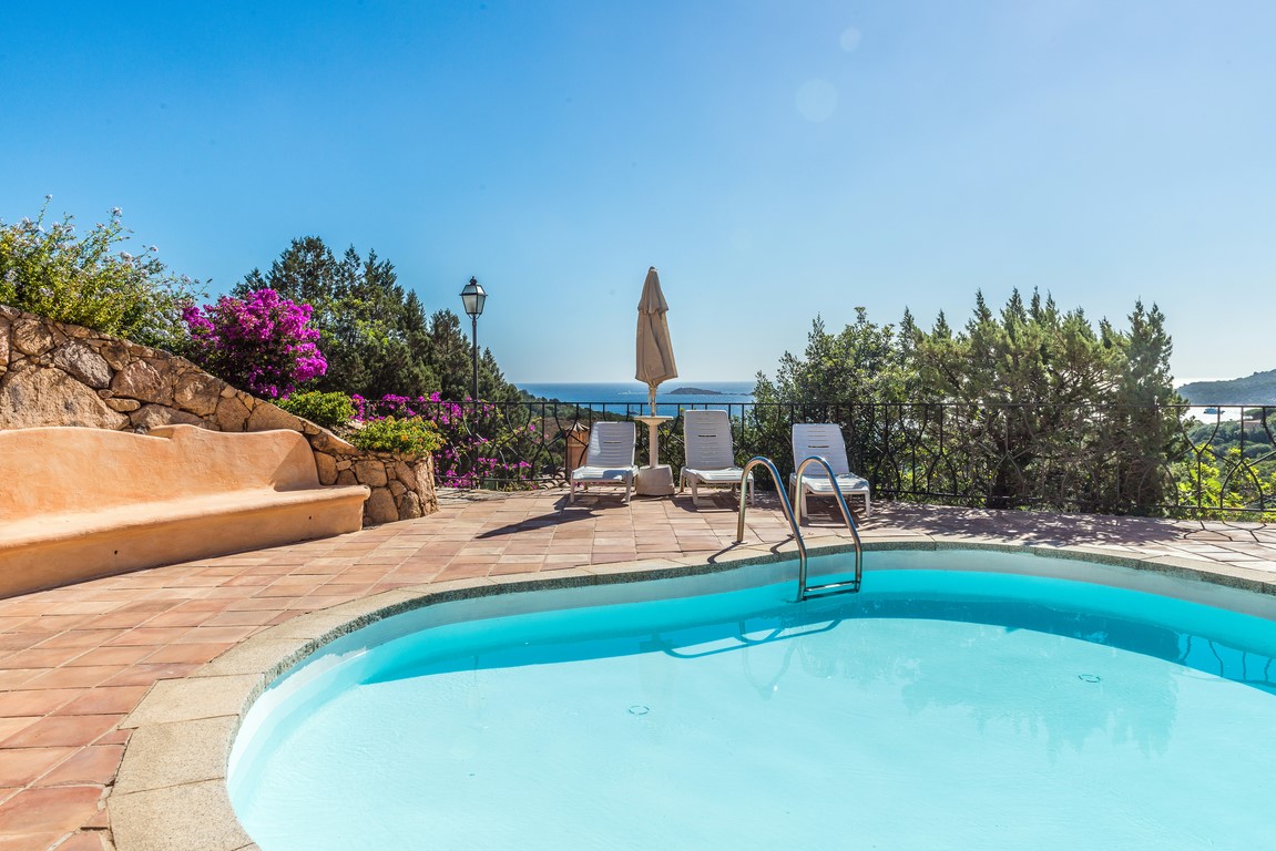 Circondata da curatissimo giardino a prato, la villa si dispone su diversi livelli e si compone di 4 camere da letto e ben 4 servizi. Il luminoso soggiorno risulta infatti racchiuso fra due timpani scorrevoli in vetro che, una volta aperti, rendono la villa un tutt’uno con il paesaggio, con la luce naturale e con la vista del mare, creando un vero e proprio open space tramite l’uso di pavimentazione indoor e outdoor. Il salotto prosegue in un generoso spazio living esterno che, assieme alla terrazza prendisole, incornicia la vista dominante sul Pevero.